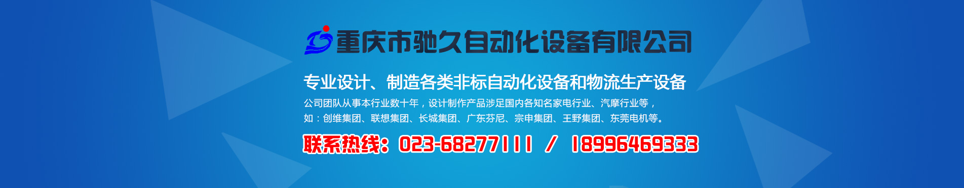 更多>- [06.04]· 熱烈祝賀重慶市馳久自動化設備有限公司網(wǎng)站上線!